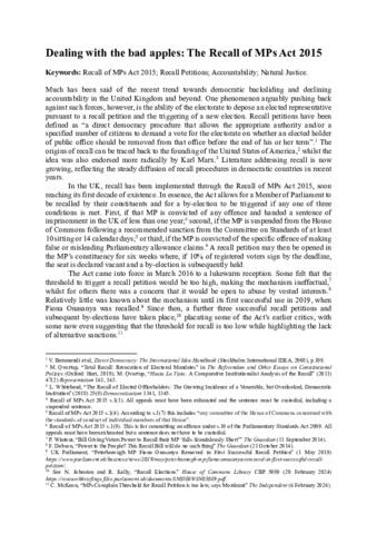 The Recall of MPs Act 2015 .pdf - Accepted Version Download (280kB) | Preview |