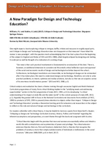 McLain, MN (2017) A New Paradigm for Design and Technology Education? Williams, P.J. and Stables, K. (eds) (2017). Critique in Design and Technology Education. Singapore: Springer Nature. Design and Technology Education: An International Journal, 22 (3). pp. 116-118. ISSN 1360-1431