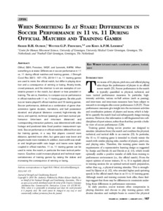 When Something Is at Stake Differences in Soccer Performance in 11 vs 11 During Official Matches and Training Games.pdf - Published Version Available under License Creative Commons Attribution Non-commercial No Derivatives. Download (116kB) | Preview |