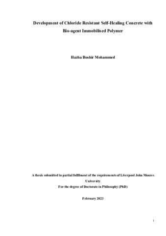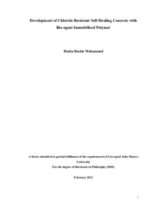 Mohammed, H (2023) Development of chloride resistant self-healing concrete with bio-agent immobilised polymer. Doctoral thesis, Liverpool John Moores University.