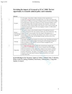 Revisiting the impact of Liverpool as ECoC 2008: the lost opportunity to reconcile cultural policy and evaluation.