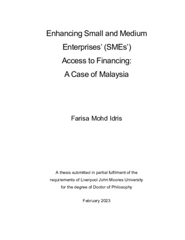 Mohd Idris, F (2024) Enhancing Small and Medium Enterprises’ (SMEs’) Access to Financing: A Case of Malaysia. Doctoral thesis, Liverpool John Moores University.