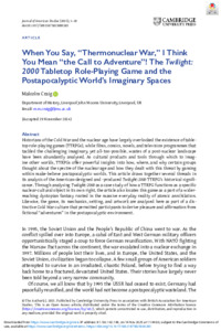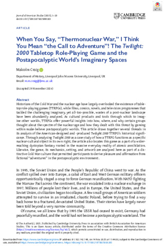When You Say Thermonuclear War I Think You Mean the Call to Adventure The Twilight 2000 Tabletop Role Playing Game and the Postapocalyptic Worlds.pdf - Published Version Available under License Creative Commons Attribution. Download (934kB) | Preview |
