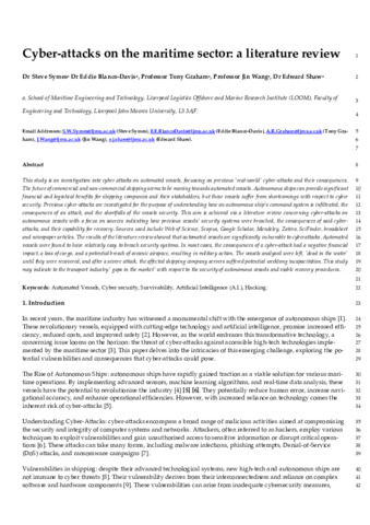 Cyberattacks on the Maritime Sector A Literature Review.pdf - Accepted Version Download (521kB) | Preview |