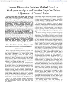 Inverse kinematics solution method based on workspace analysis and iterative step coefficient adjustment of general robot.pdf - Accepted Version Available under License Creative Commons Attribution Non-commercial No Derivatives. Download (2MB) | Preview |