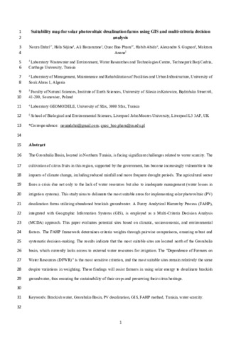 Suitability map for solar photovoltaic desalination farms using GIS and multi-criteria decision analysis.pdf - Accepted Version Download (8MB) | Preview |