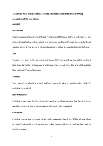 The Clinical Pillar above all others; Trainee Advanced Clinical Practitioners (tACPs) perceptions of the four pillars.pdf - Accepted Version Download (363kB) | Preview |