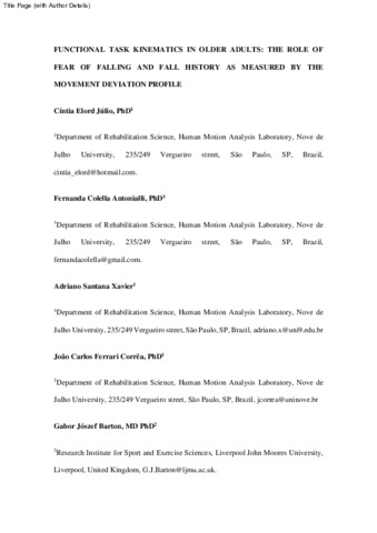FUNCTIONAL TASK KINEMATICS IN OLDER ADULTS THE ROLE OF FEAR OF FALLING AND FALL HISTORY AS MEASURED BY THEMOVEMENT DEVIATION PROFILE.pdf - Accepted Version Available under License Creative Commons Attribution Non-commercial No Derivatives. Download (2MB) | Preview |