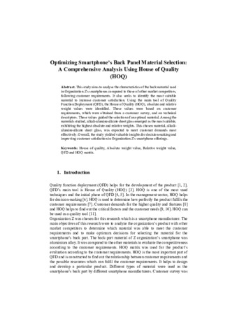 Optimizing Smartphone’s Back Panel Material Selection A Comprehensive Analysis Using House of Quality (HOQ).pdf - Accepted Version Download (321kB) | Preview |