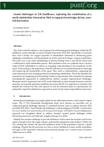 Grand challenges in UK healthcare exploring the contribution of a Multi stakeholder Innovation Hubs to support knowledge driven.pdf - Published Version Available under License Creative Commons Attribution Non-commercial No Derivatives. Download (633kB) | Preview |