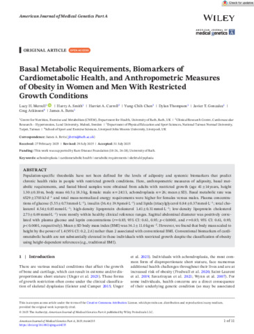 Basal metabolic requirements, biomarkers of cardiometabolic health and anthropometric measures of obesity in adults with restricted growth conditions.