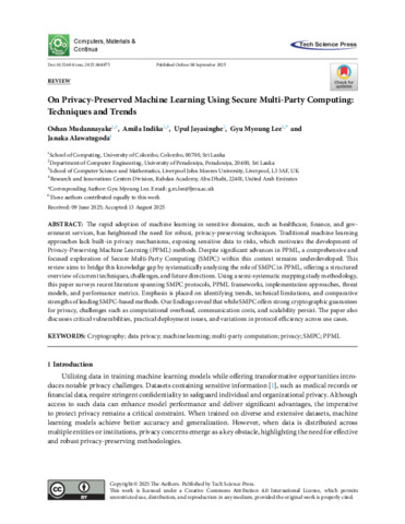On Privacy-Preserved Machine Learning using Secure Multi-Party Computing Techniques and Trends.pdf - Published Version Available under License Creative Commons Attribution. Download (1MB) | Preview |