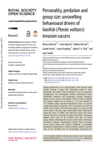 Personality predation and group size Unravelling behavioural drivers of lionfish Pterois volitans invasion success.pdf - Published Version Available under License Creative Commons Attribution. Download (1MB) | Preview |