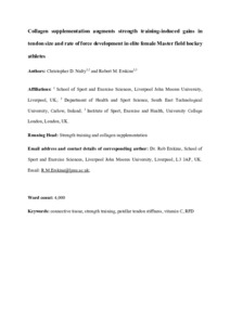 Collagen supplementation augments strength training-induced gains in tendon size and rate of force development in elite female Master field hockey athletes.