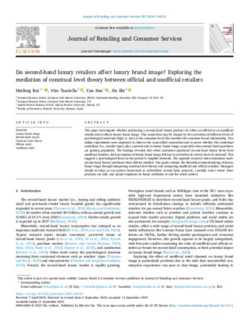 Do second hand luxury retailers affect luxury brand image Exploring the mediation of construal level theory.pdf - Published Version Available under License Creative Commons Attribution. Download (888kB) | Preview |