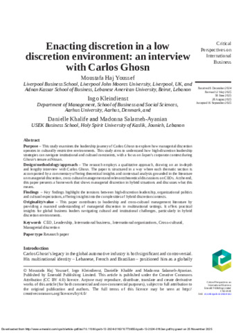 Enacting discretion in a low discretion environment - an interview with Carlos Ghosn.pdf - Accepted Version Access Restricted Available under License Creative Commons Attribution Non-commercial. Download (382kB) |