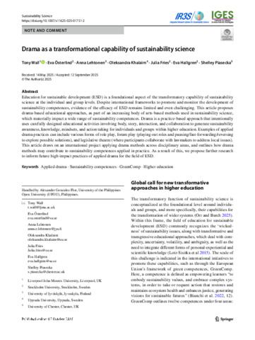 Drama as a transformational capability of sustainability science.pdf - Published Version Available under License Creative Commons Attribution. Download (720kB) | Preview |