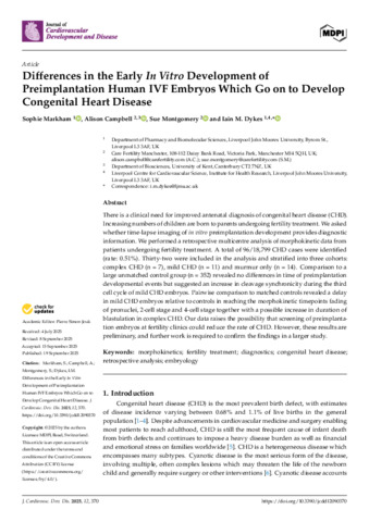 Differences in the Early In Vitro Development of Preimplantation Human IVF Embryos Which Go on to Develop Congenital Heart Disease.pdf - Published Version Available under License Creative Commons Attribution. Download (2MB) | Preview |