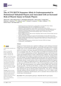 The ACTN3 R577X Nonsense Allele Is Underrepresented in Professional Volleyball Players and Associated with an Increased Risk of Muscle Injury in Female Players.