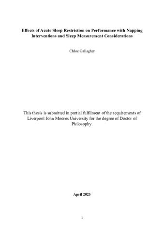 Effects of Acute Sleep Restriction on Performance with Napping Interventions and Sleep Measurement Considerations.