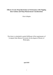 Acute sleep restriction is associated with a host of negative effects on an individual’s health and wellbeing. However, the extent in which these outcomes influence exercise performance, cognitive function and perceptual responses are still not fully understood. This thesis explores acute sleep restriction and evaluates the effectiveness of nap interventions in mitigating the consequences of sleep loss on performance. Chapter 1 introduces sleep restriction and outlines different interventions, such as daytime napping, that have been proposed to alleviate the impact of sleep loss on performance. Chapter 2, presents a mixed methods narrative review examining 33 studies that were extracted from the literature on acute sleep restriction and the effects on exercise types, cognitive domains and perceptual responses. The review highlights methodological inconsistencies such as sleep measurement, that limit comparability of findings between studies. Chapter 3 outlines the standardised testing protocols used throughout the experimental chapters, with further information on the equipment, protocols and techniques used were outlined. Chapter 4 explores the validity of consumer sleep devices and research grade actigraphy compared to polysomnography in the laboratory versus the home setting. The findings suggest that consumer devices have significant discrepancies when compared to polysomnography and are not yet suitable for research or clinical use. Collectively, Chapters 5, 6 and 7 evaluated the effectiveness of naps, with consideration for timing and duration of the nap session. Despite employing rigorous research designs such as dietary control and objective sleep assessment with polysomnography, post lunch naps did not improve afternoon submaximal or maximal performance when compared to a no nap condition. However, nap interventions were effective in improving cognitive function and perceptual responses, likely due to reducing homeostatic pressure, excessive fatigue and restoring alertness. Chapter 8 synthesises the findings from the 4 experimental chapters and collectively concludes that the effectiveness of nap interventions following sleep restriction is likely task dependent. While longer nap durations allow for more restorative benefits however the translation to performance enhancement depends on the performance type. Tasks requiring greater cognitive demand and attentional focus over longer bouts appear to gain greater benefits from naps following sleep restriction. The synthesis further highlights the importance of rigorous research designs to account for individual variability in sleep need and performance outcomes.