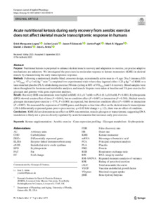 Acute nutritional ketosis during early recovery from aerobic exercise does not affect skeletal muscle transcriptomic response in humans..pdf - Published Version Available under License Creative Commons Attribution. Download (1MB) | Preview |