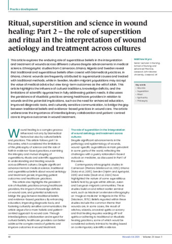Ritual, superstition and science in wound healing: Part 2 – the role of superstition and ritual in the interpretation of wound aetiology and treatment across cultures.