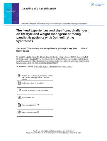 The lived experiences and significant challenges on lifestyle and weight management facing paediatric patients with Demyelinating.pdf - Published Version Available under License Creative Commons Attribution. Download (2MB) | Preview |