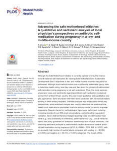 Advancing the safe motherhood initiative A qualitative and sentiment analysis of local physicians perspectives on antibiotic selfmedication.pdf - Published Version Available under License Creative Commons Attribution. Download (872kB) | Preview |