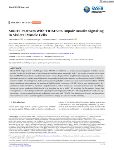 The FASEB Journal - 2025 - Musa - MuRF1 Partners With TRIM72 to Impair Insulin Signaling in Skeletal Muscle Cells.pdf - Published Version Available under License Creative Commons Attribution. Download (5MB) | Preview |