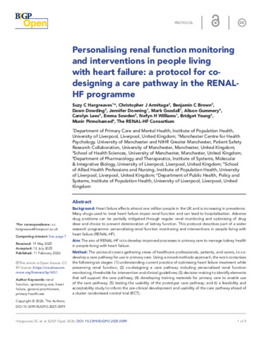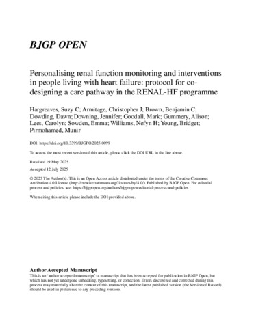 Personalising renal function monitoring and interventions in people living with heart failure: protocol for co-designing a care pathway in the RENAL-HF programme.
