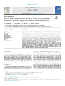 From individual interventions to structural change: Why public health leadership is needed to engage men and boys in violence prevention.