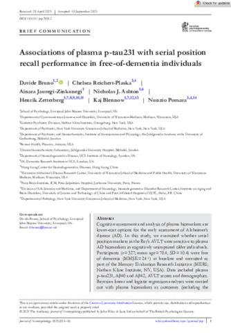 Associations of plasma p-tau231 with serial position recall performance in free-of-dementia individuals.
