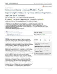 Prevalence, risks and outcomes of frailty in People Experiencing Homelessness: a protocol for secondary analysis of Health Needs Audit data.
