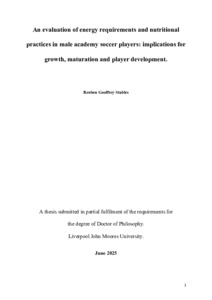 Stables, R (2025) An evaluation of energy requirements and nutritional practices in male academy soccer players: implications for growth, maturation and player development. Doctoral thesis, Liverpool John Moores University.