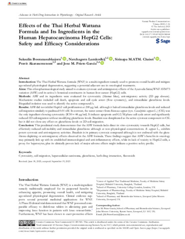 Effects of the Thai Herbal Wattana Formula and Its Ingredients in the Human Hepatocarcinoma HepG2 Cells Safety and Efficacy Considerations.pdf - Published Version Available under License Creative Commons Attribution Non-commercial. Download (2MB) | Preview |
