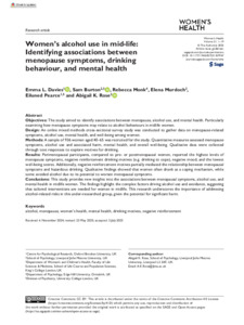 Women’s alcohol use in mid-life: Identifying associations between menopause symptoms, drinking behaviour, and mental health.