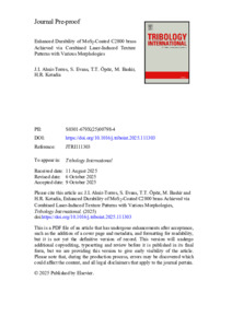 Enhanced Durability of MoS2-Coated C2800 brass Achieved via.pdf - Accepted Version Available under License Creative Commons Attribution. Download (3MB) | Preview |