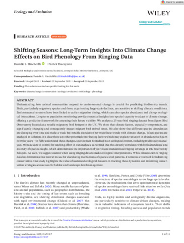 Shifting Seasons Long Term Insights Into Climate Change Effects on Bird Phenology From Ringing Data.pdf - Published Version Available under License Creative Commons Attribution. Download (725kB) | Preview |