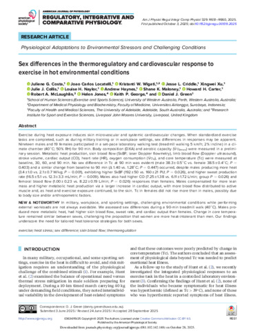 Sex differences in the thermoregulatory and cardiovascular response to exercise in hot environmental conditions.