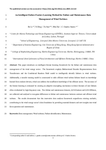 An intelligent failure feature learning method for failure and maintenance data management of wind turbines.pdf - Accepted Version Available under License Creative Commons Attribution Non-commercial No Derivatives. Download (1MB) | Preview |
