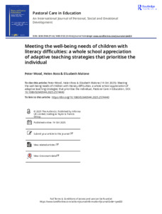 Meeting the well-being needs of children with literacy difficulties a whole school appreciation of adaptive teaching strategies that prioritise the i.pdf - Published Version Available under License Creative Commons Attribution. Download (1MB) | Preview |