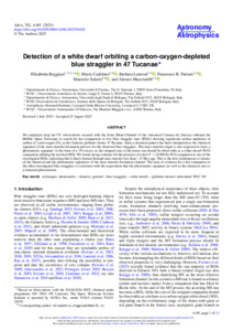 Detection of a white dwarf orbiting a carbon oxygen depleted blue straggler in 47 Tucanae.pdf - Published Version Available under License Creative Commons Attribution. Download (3MB) | Preview |
