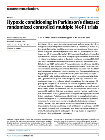 Hypoxic conditioning in Parkinson’s disease: randomized controlled multiple N-of-1 trials.