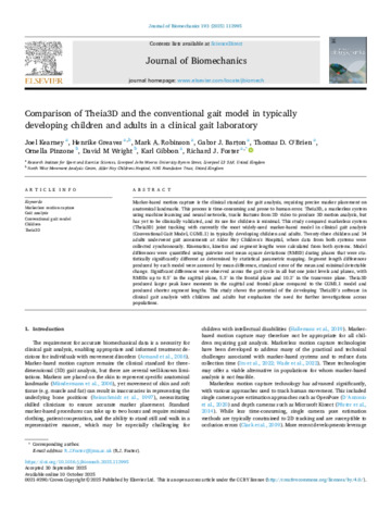Comparison of Theia3D and the conventional gait model in typically developing children and adults in a clinical gait laboratory.pdf - Published Version Available under License Creative Commons Attribution. Download (9MB) | Preview |