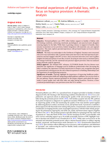 Parental Experiences of Perinatal Loss with a Focus on Hospice Provision A Thematic Analysis.pdf - Published Version Available under License Creative Commons Attribution. Download (721kB) | Preview |
