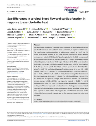 Sex differences in cerebral blood flow and cardiac function in response to exercise in the heat.pdf - Published Version Available under License Creative Commons Attribution. Download (1MB) | Preview |