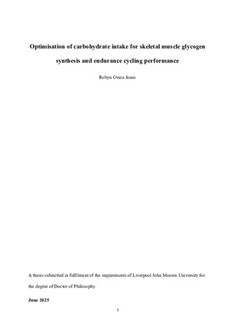 Jones, RO (2025) Optimisation of carbohydrate intake for skeletal muscle glycogen synthesis and endurance cycling performance. Doctoral thesis, Liverpool John Moores University.