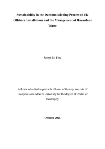 Sustainability in the Decommissioning Process of UK Offshore Installations and the Management of Hazardous Waste.