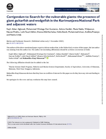 Search for the vulnerable giants: the presence of giant guitarfish and wedgefish in the Karimunjawa National Park and adjacent waters.